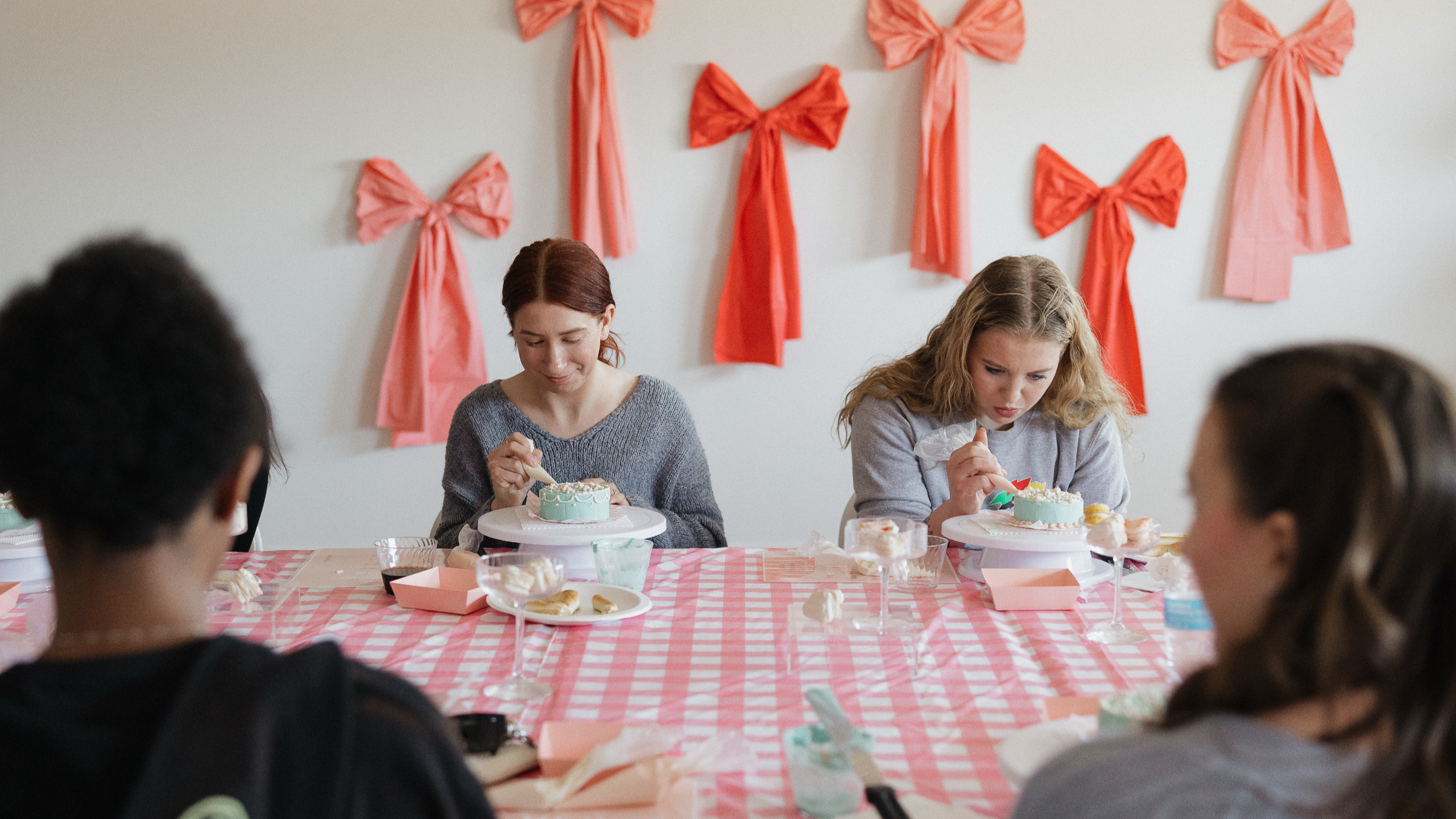 Catherine hosted us for an afternoon for one of her Bento Cake decorating classes! We were treated with homemade pretzels and some of her delicious macarons. Catherine taught us different piping and decorating techniques. She made the class feel so personable she even hand-wrote each attendee’s name on the cake topping.
